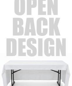 There are three sizes, suitable for 4-foot, 6-foot, and 8-foot by 2-foot tables. The exact dimensions of these sizes are 101.5″ wide, 124.5″ wide, and 148.5″ wide, and all of them are 58.9″ high. They cover the top, front, and sides of the table, but not the back. Design templates are available in the next tab to help with setting up your graphics correctly.